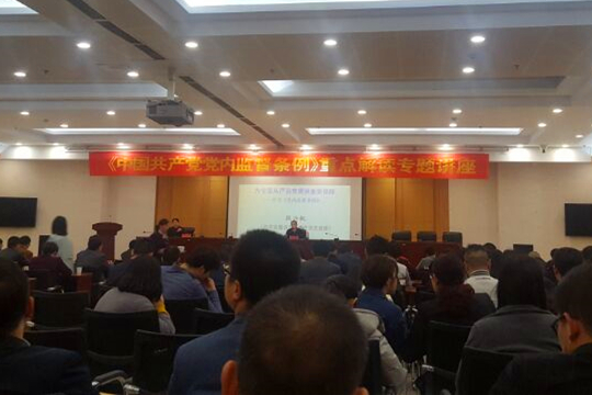 此次講座邀請了中共安徽省委黨校黨史黨建部段興權主任,以為全面從嚴治黨提供保障--學(xué)習《黨內監督條例》為主題。結合大量的實(shí)際案例,圍繞修訂條例的背景情況、條例的結構和內容以及如何落實(shí)好黨內監督責任等方面作了全面闡述和詳細解讀。講座既內涵深刻、內容豐富,又分析透徹、鞭辟入里。為學(xué)習好、領(lǐng)會(huì )好、執行好條例發(fā)揮了重要的指導和推動(dòng)作用。