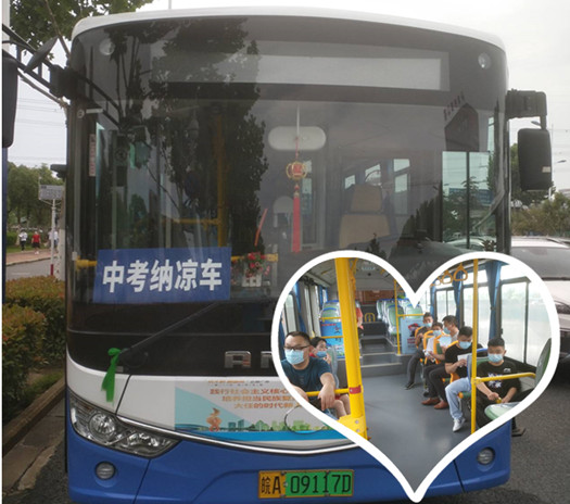 高新公交為做好中考公交服務(wù),為家長(cháng)及考生特設“納涼車(chē)”,全天候為考生家長(cháng)提供休息和遮陽(yáng)擋雨的場(chǎng)所,并免費提供飲品。在炎炎夏熱,為廣大考生及家長(cháng)送去一份清涼。