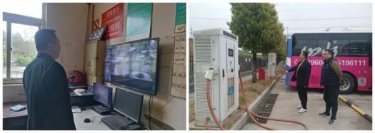 此次檢查主要圍繞調度室、場(chǎng)站、車(chē)輛三方面展開(kāi)。檢查組首先前往調度室,對調度室內水電設施、消防設備進(jìn)行檢查,提醒調度員節假日期間要注意水電安全,嚴禁拖拉電線(xiàn)、使用明火。隨后巡查場(chǎng)站時(shí),要求場(chǎng)站人員加強車(chē)輛進(jìn)出管理力度,進(jìn)一步規范場(chǎng)站內車(chē)輛停放秩序,同時(shí)對場(chǎng)站內高壓配電房、充電樁、監控等設備進(jìn)行檢查。
